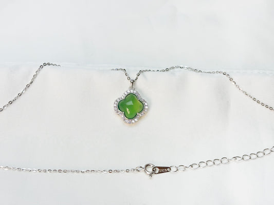 925 Silber Halskette mit Jade-Kleeblatt und Zirkonia