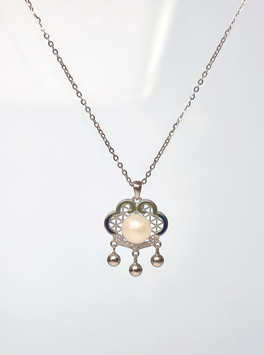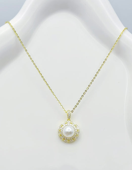 925er Silberkette mit Süßwasserperlen und Zirkonia-Anhänger