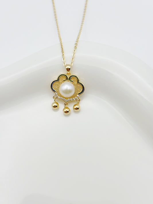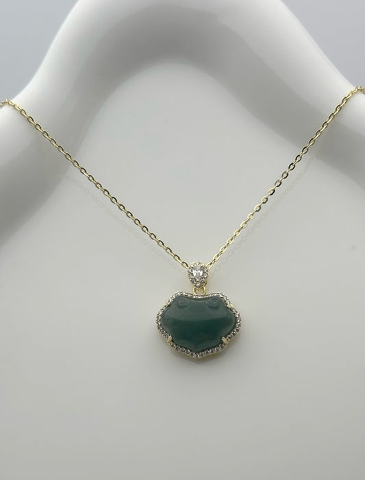 925 Silber Halskette mit Jade-Schloss-Anhänger und Zirkonia