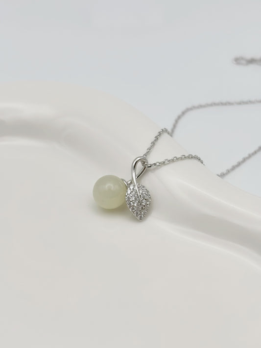Elegante 925er Silber Halskette mit Hetian Jade Anhänger & Zirkonia | Zeitloses
