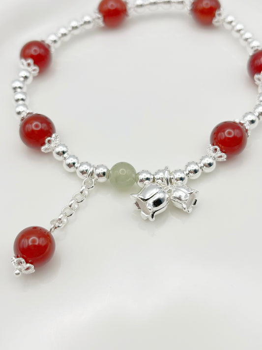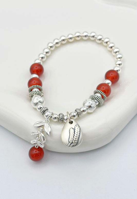 925 Silber Armband mit Roten Edelsteinperlen – Handgefertigt & Elegant