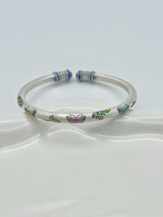999,9 Feinsilber Armreif mit Schmetterlingsanhänger | Flexibel & Elegant