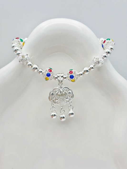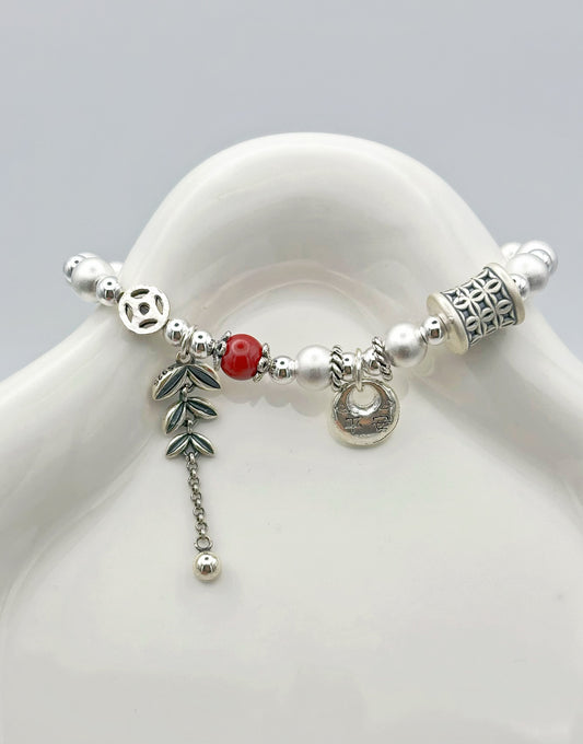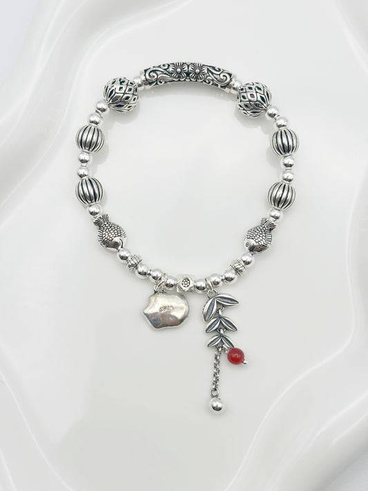 925er Silber Armband mit handgefertigten Details & Anhängern