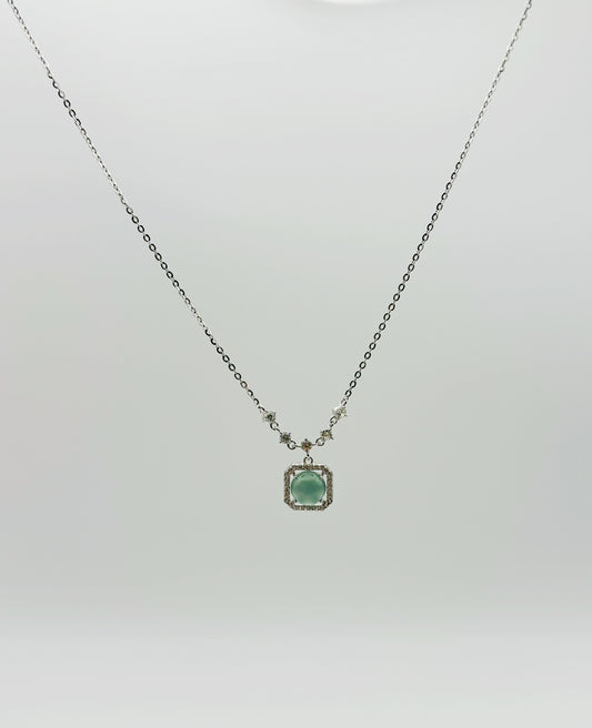 • Elegante 925er Silberkette mit Jade- und Zirkonia-Anhänger