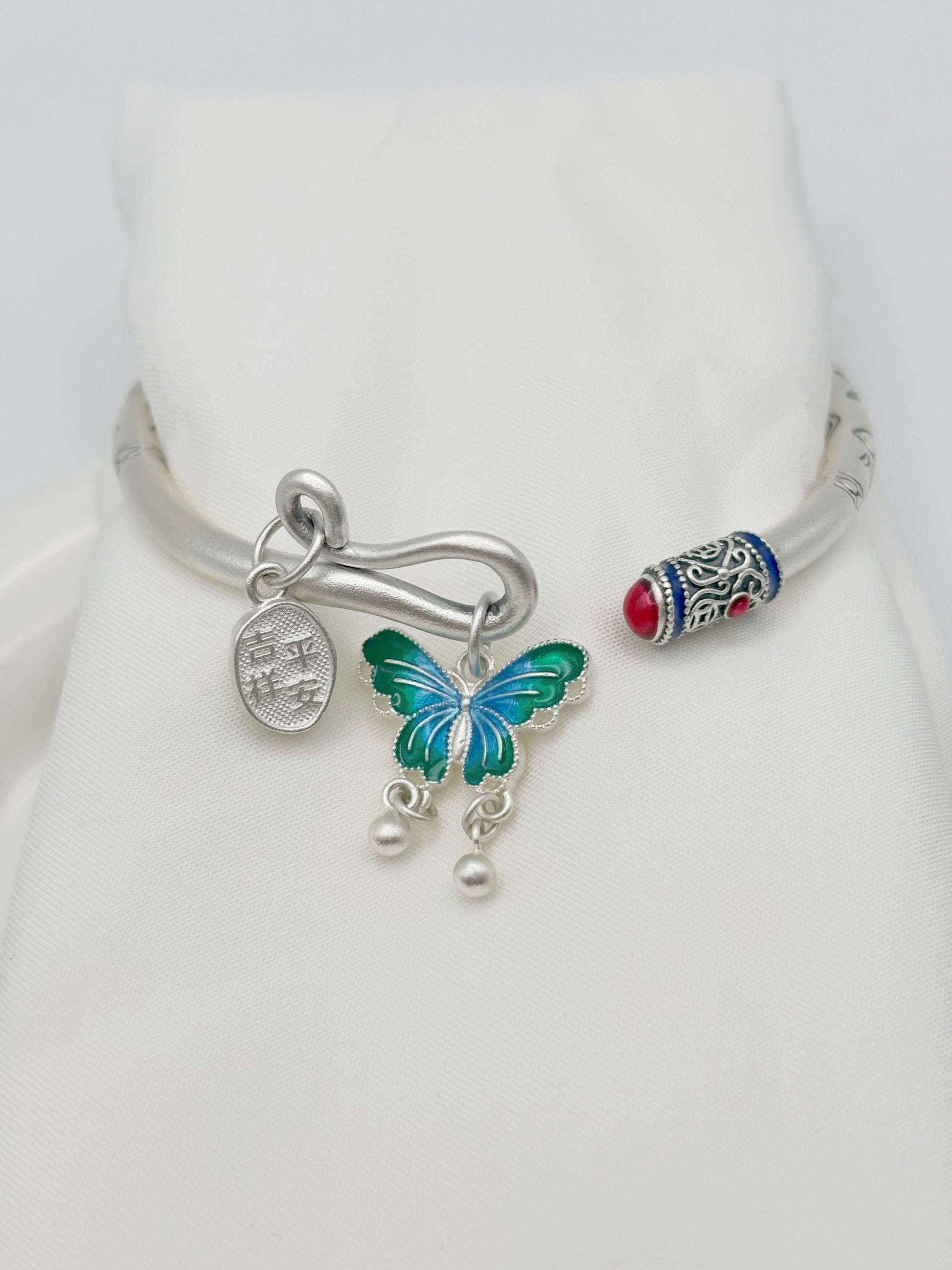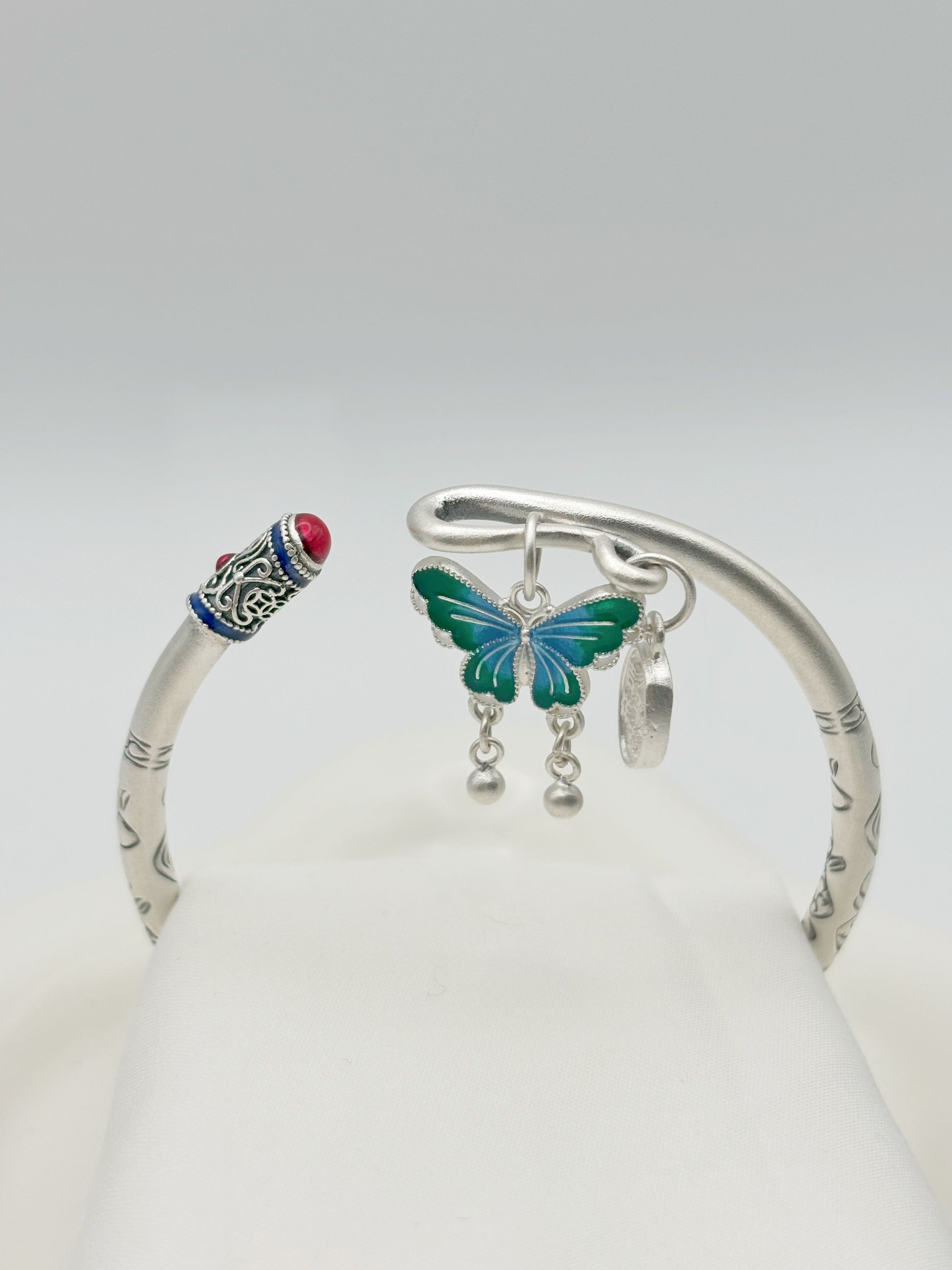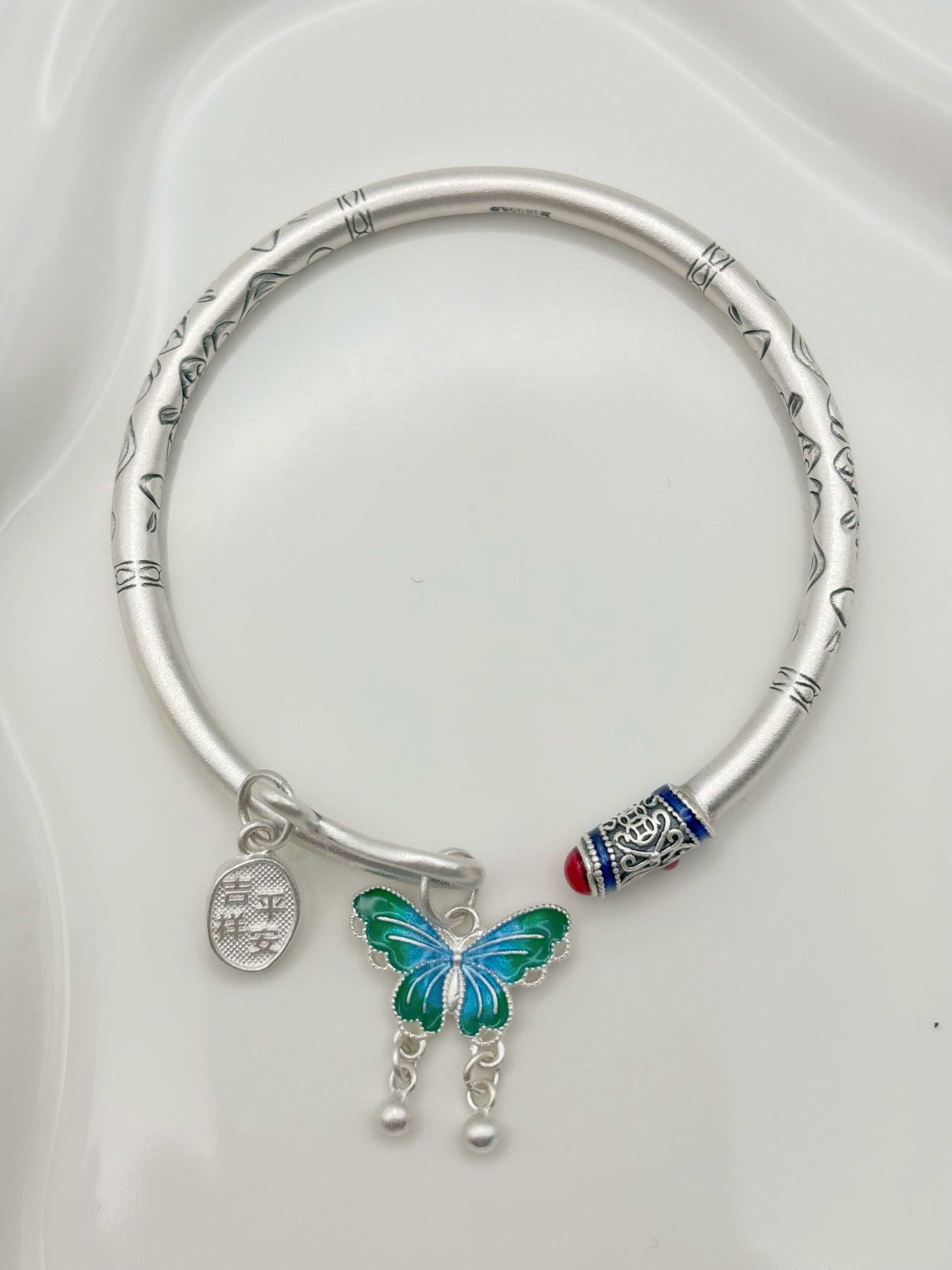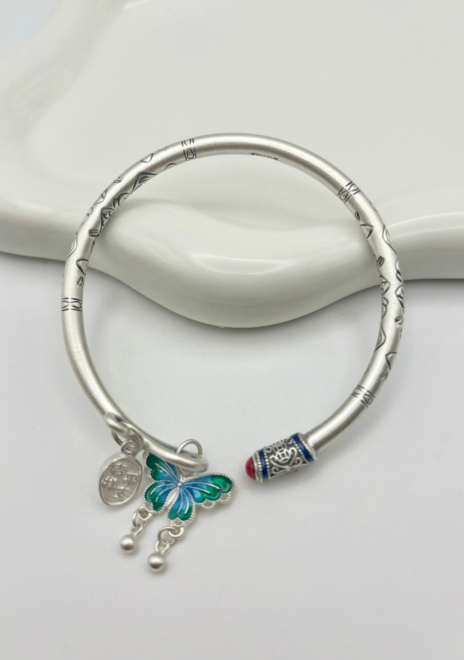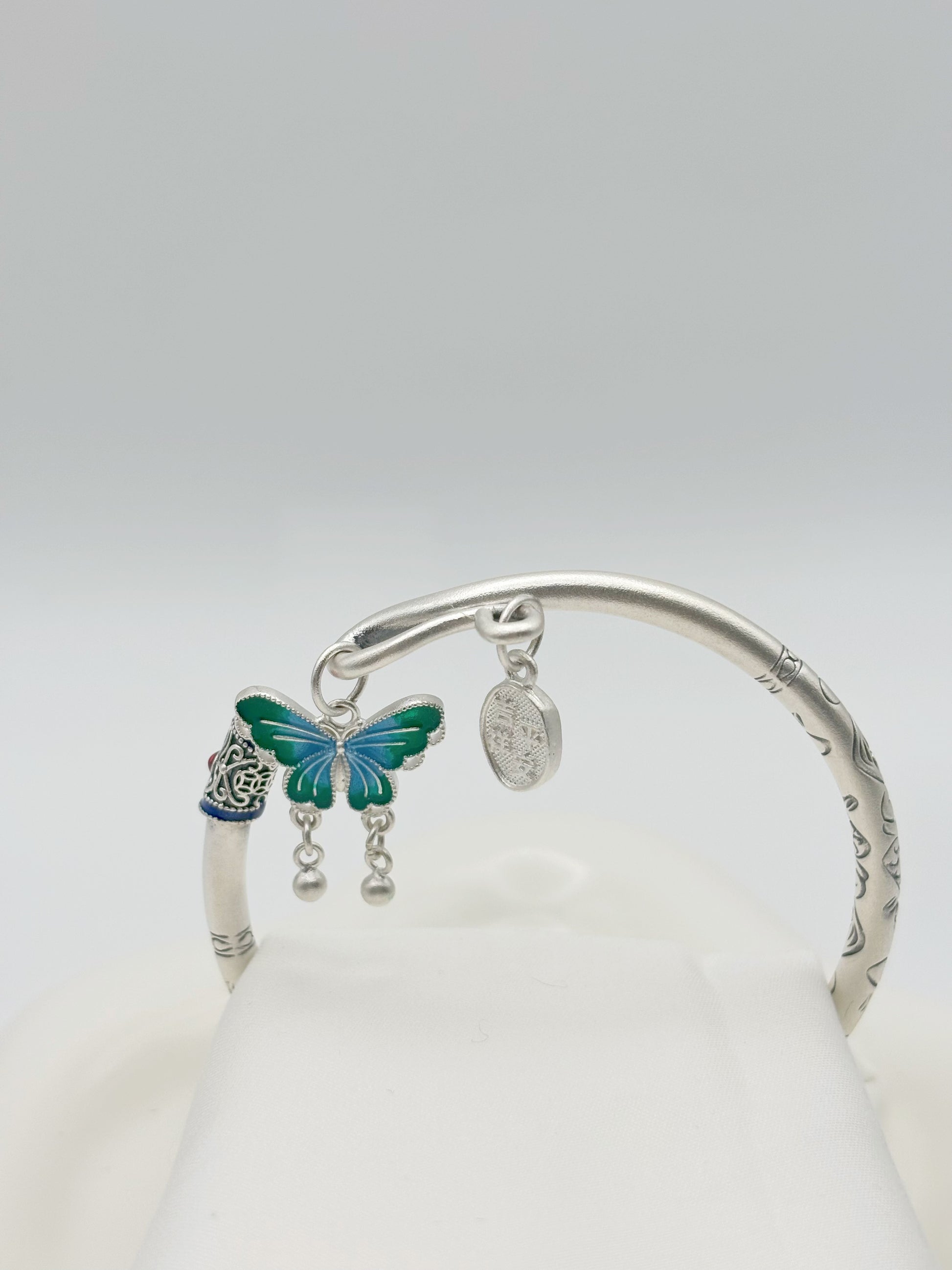 999,9 Feinsilber Armreif mit Schmetterlingsanhänger | Flexibel & Elegant