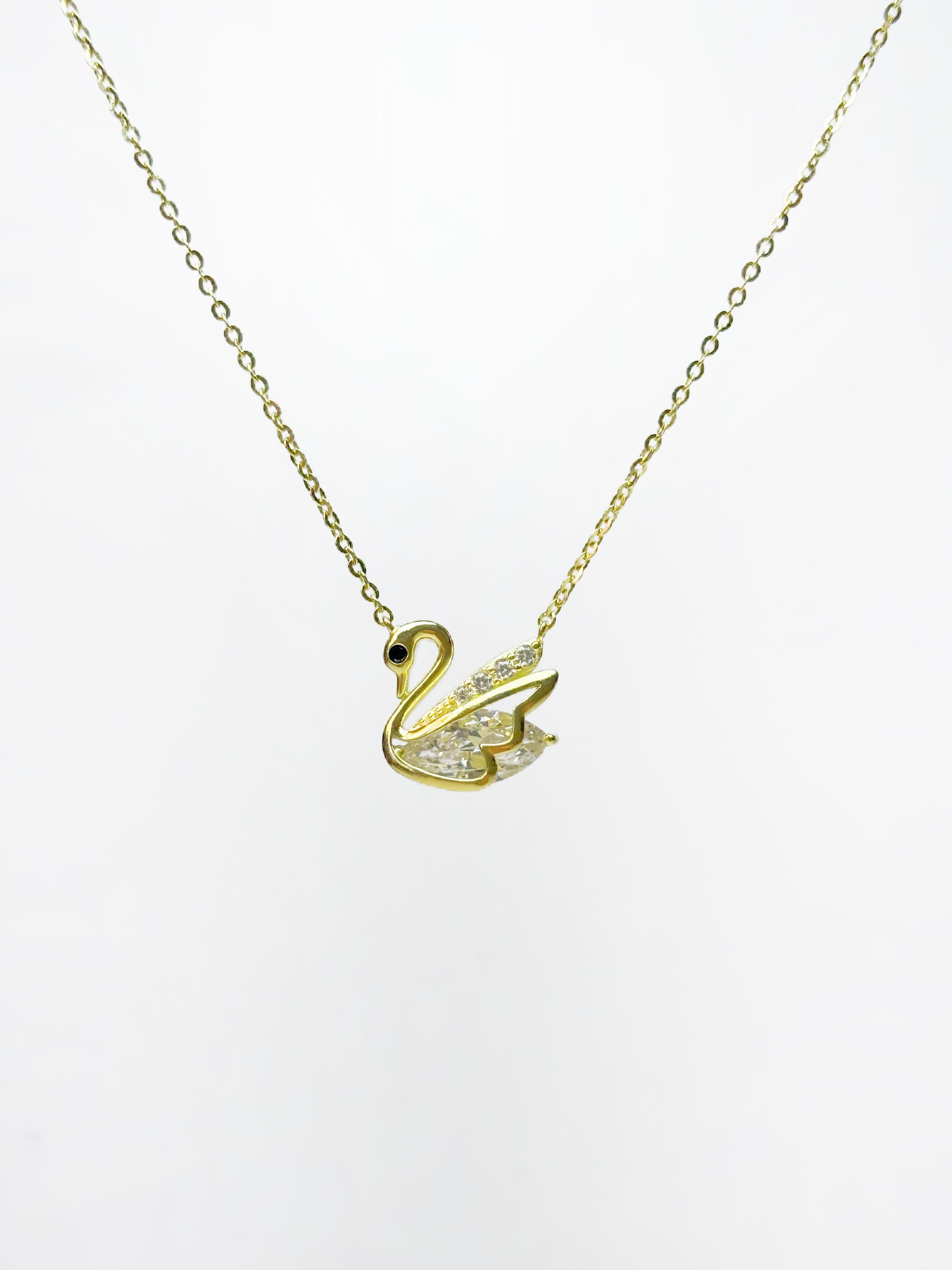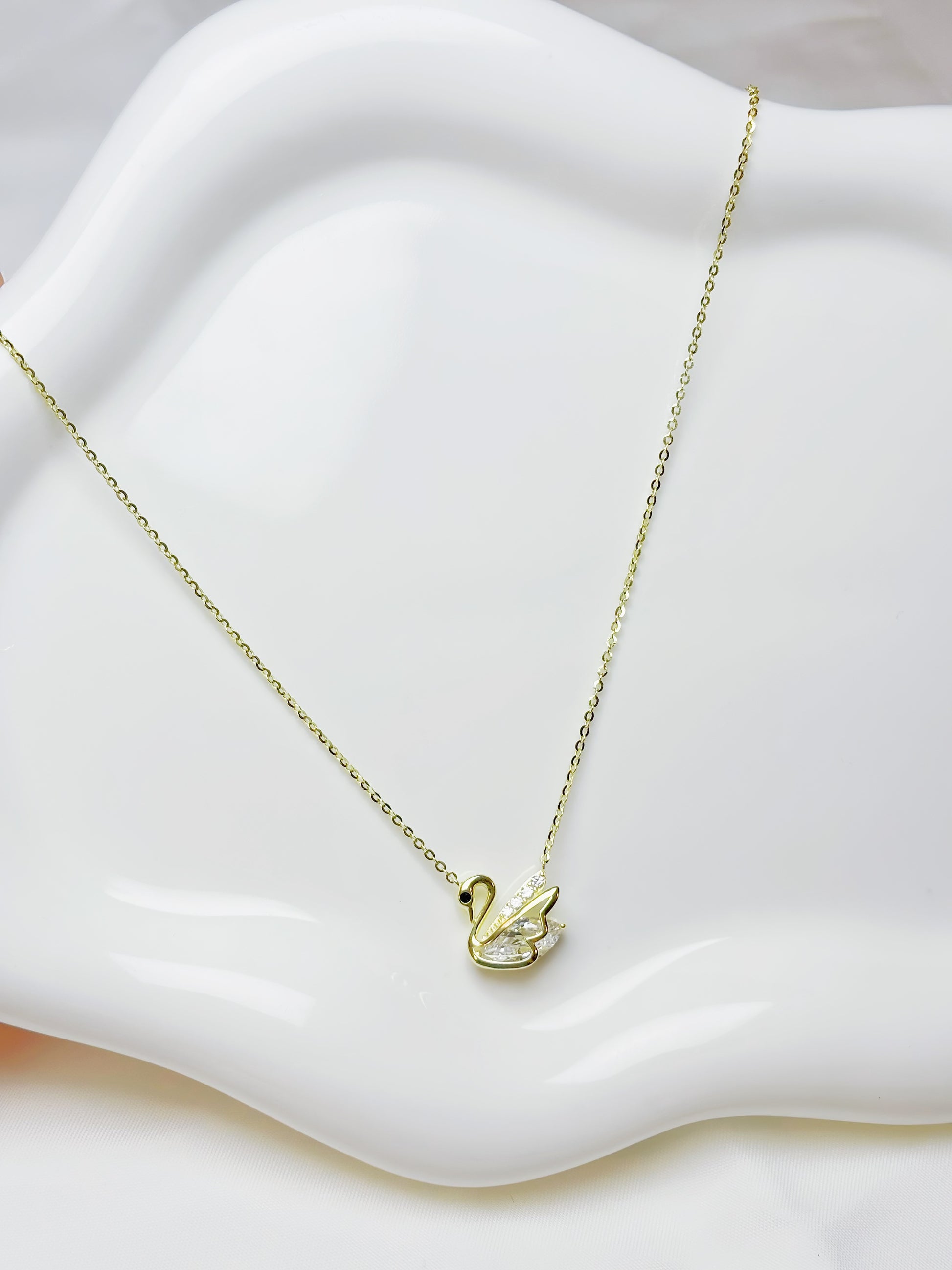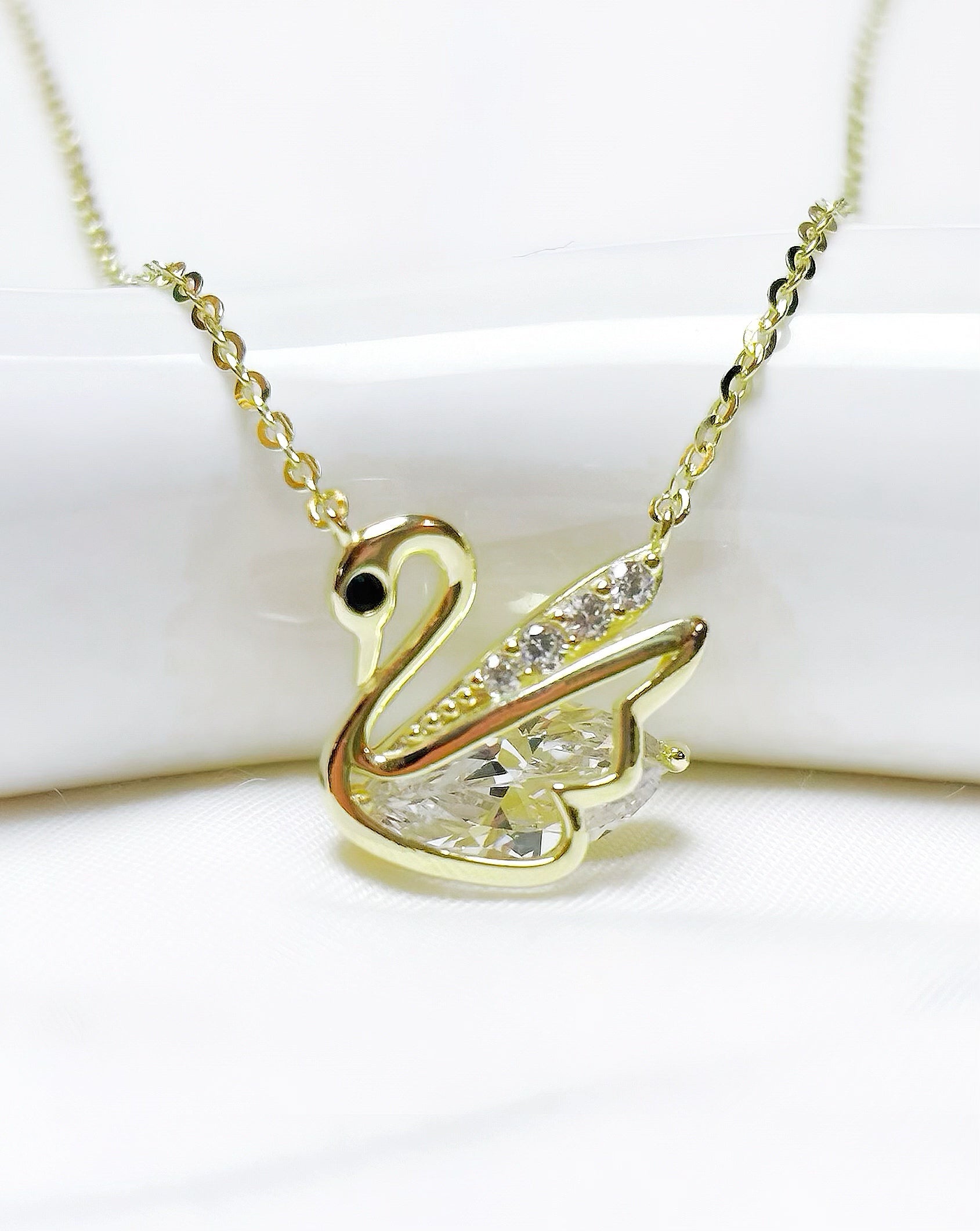 Elegante Schwan-Halskette, 925er-Silber, Zirkonia